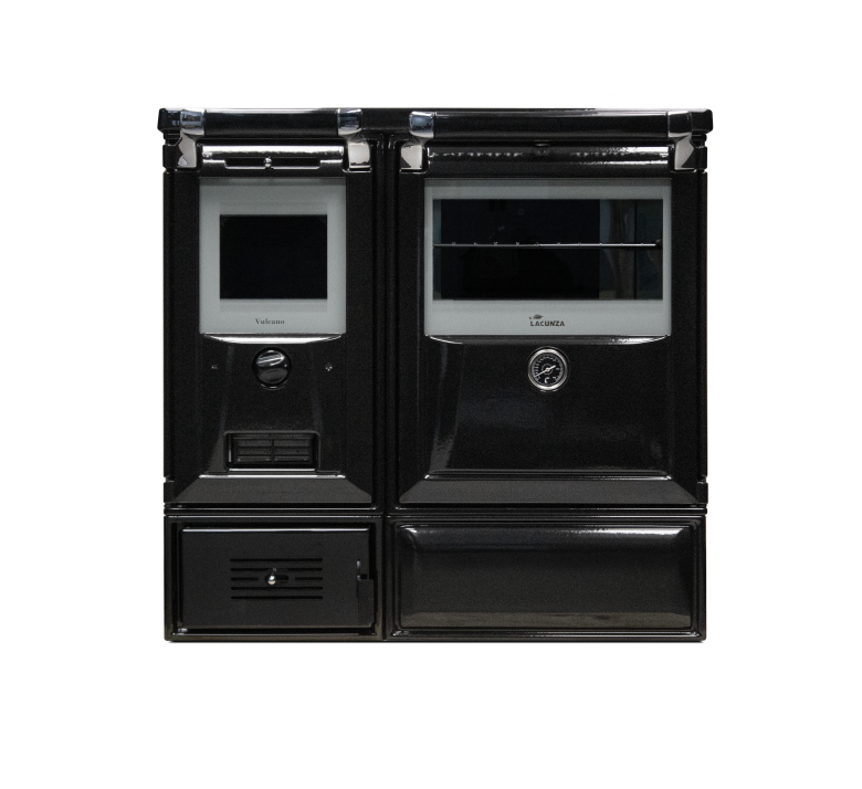 Vedeldad köksspis med yta i högkvalitativ emalj. Kan rengöras med bara en fuktig trasa.