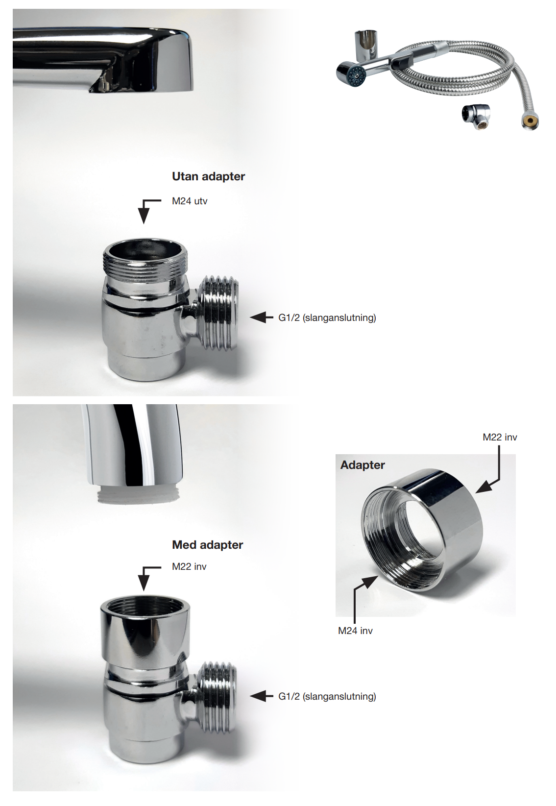 Duschset för bidé och tvättställ 150cm KromArt nr. 172-90278 kr